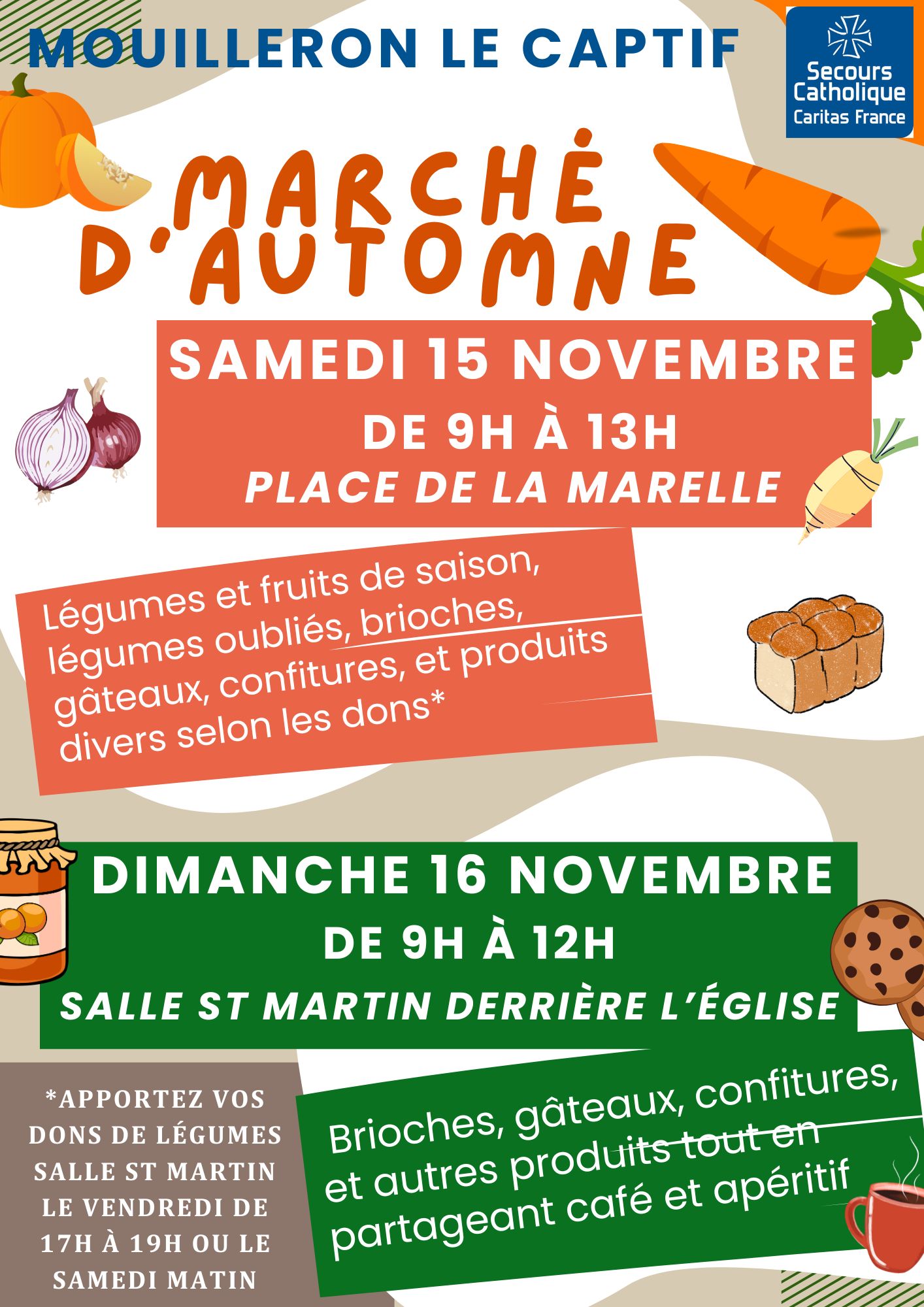 Deux dates, deux lieux pour un marché d'automne solidaire à Mouilleron le Captif :